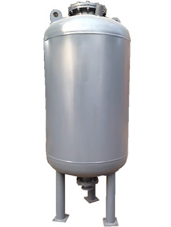 囊式定壓罐的工作原理:囊式定壓罐是由鋼質(zhì)外殼,橡膠氣囊內(nèi)膽構(gòu)成的儲能器件,橡膠氣囊把水室和氣室完全隔開。當(dāng)系統(tǒng)壓力降低時,預(yù)充氮?dú)獾膲毫饽依锏乃當(dāng)D入系統(tǒng),減緩系統(tǒng)壓力降低,起到穩(wěn)壓作用;當(dāng)系統(tǒng)壓力升至高于氣室里氮?dú)獾膲毫r,水進(jìn)入氣壓罐的氣囊中,此時氣囊膨脹,吸收壓力,防止系統(tǒng)壓力急劇上升,起到穩(wěn)定系統(tǒng)壓力作用。